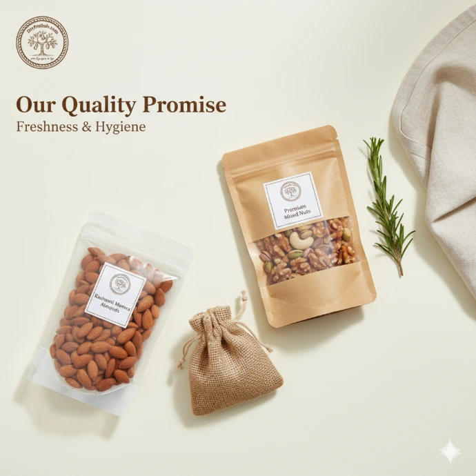 Every product we offer is handpicked, hygienically packed, and quality-checked to ensure you receive only the freshest and purest dry fruits.